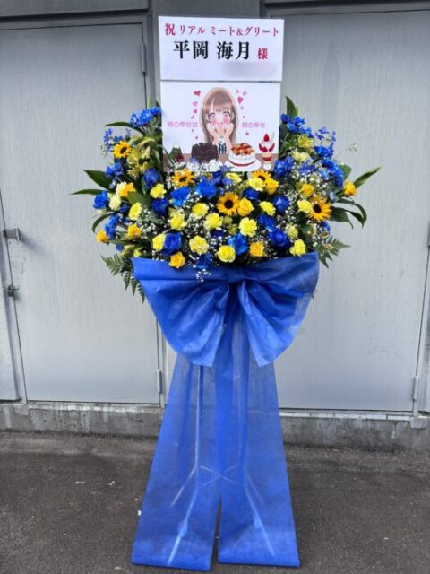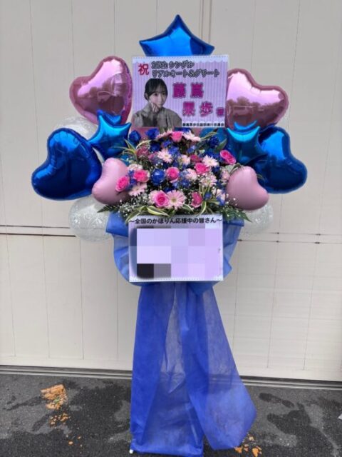 @京都パルスプラザへ、推しカラーのフラワーアレンジメント・バルーンフラワーアレンジメント・フラワースタンドをお届けさせていただきました。